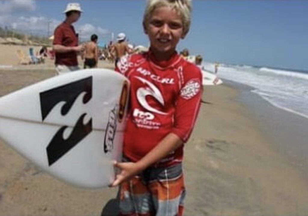 He has been surfing since he was 2 and grew up in a family of 5 with siblings and parents who are avid surfers.